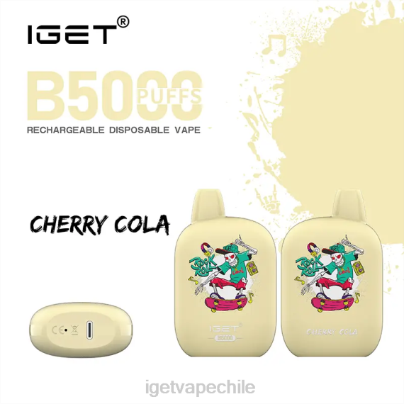 iget b5000 cherry cola combina cola tradicional con cola madura sabor a cereza para una experiencia de vapeo gaseosa y afrutada que atrae a los entusiastas de las colas y las frutas.